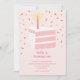 Um belo pedaço de bolo rosa e solteiro de vela no primeiro aniversário. Personalize facilmente este design com os detalhes do seu partido! Verifique nossa coleção de correspondência para coordenar itens.