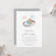 Os convites para chás de panela ou chás de casamento festivos apresentam uma fatia de bolo de camada abarrotada de arco-íris, acentuada com aqua confetti e faíscas de aquarela. Personalize com os detalhes do seu chá em letra de cinza.