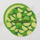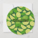Frente. Fatias e folhas de limão. Um padrão perfeito. Cor de fundo personalizada. Custom Text. Verso: Fatia redonda do fundo do limão. Campos de texto personalizados para informações sobre eventos.