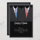 Convite para casamento Elegante de gay com dois fatos de pinstripe. Um terno tem gravata vermelha e o outro uma gravata azul. Esta carta tem uma borda escura de cinzas e linha divisória. Pers
