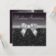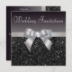 Convites de casamento elegantes, em preto, prata e branco, com um lindo padrão de sequências impressas em branco, um arco e uma fita impressos em prata brilhante, bem como uma bonito imagem de joia de mistura de diamante impressa e texto branco. Estes convites elegantes são decorados de ambos os lados. Lindos, bonitos, quentes, modernos convites. Observe que: Todos os convites no Zazzle têm imagens impressas em formato simples.O texto, a fonte e a cor da fonte podem ser personalizados. Se precisar de ajuda para personalizar seu produto, entre em contato comigo pela loja. Ficarei feliz em ajudar.