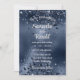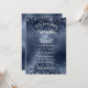 Um convite de casamento com um elegante brilho azul escuro e fundo de folha de alumínio.