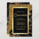 Convites Faux Dourada Glitter Black Marble Quinceanera