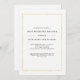 Estes convites modernos e elegantes para brunch de posto apresentam texto preto sobre fundo branco, com uma falsa borda dourada.