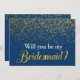 Que melhor maneira de pedir ao seu melhor amigo para ser sua dona de Bridesmaid? Apresentando Faux Dourado glitter confetti/pontos com fundo de Marinho e fontes brancas em ambos os lados A frente diz "Você será minha dama de Bridesmaid?" As costas têm o nome e "significará o mundo para mim se você disser sim!" Personalize com nomes e data de casamento para fazer do seu pedido um dos tipos. Estão disponíveis Cartões de Matrão de Honra, Madrinha de casamento, Jr. Bridesmaid Cards e muito mais. Se não vires o que queres, solta-nos uma linha e faremos uma para ti