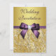 Ouro personalizado elegante e convites de casamento roxos com uma bela sequência impressa em ouro brilhante sequências de imagens joias, gemas, padrão de brilho, arcos roxos e fitas impressas, fofinhas e sofisticadas, e diamantes digitais bonito bordando joias e texto roxo sobre um fundo gradiente de ouro. Por favor, note: todos os convites no Zazzle têm gráficos impressos planos - sem peças levantadas. Estes convites elegantes, brilhantes e glamourosos para casamentos são decorados de ambos os lados. Bonita, na moda, chique, moda, moderna, glitz e convites glamourosos. O texto, a fonte e a cor da fonte podem ser personalizados. Se precisar de ajuda para personalizar seu produto, entre em contato comigo através da minha loja. Ficarei feliz em ajudar. Eu tenho produtos correspondentes para casamentos na minha loja.