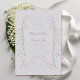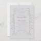 Um esboço falsa de alguns delicados caules de lírio das flores do vale, arranjado em um belo quadro de fronteira, decora este lírio do vale, design de convite para casamento clássico e floral, simples mas sofisticado, eterno e elegante. Observe que o relevo é criado por meio de uma imagem e nenhum relevo real aparecerá no cartão. Este clássico convite de casamento simbólico moderno é perfeito para casais que preferem convites formais de casamento tradicionais e que amam o efeito gravado, temas florais, o lírio do vale em particular e a caligrafia clássica de casamento.