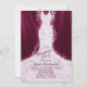 Personalize este Chá de panela Elegante Na moda ou Convite de festas Personalizado com uma imagem de um vestido de casamento de diamante falso com brilho sob holofotes em um fundo vermelho de vinho burgundy. Observe que esta é uma falha de impressão de cor e não é uma falha real.