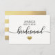 Casamento único moderno e moderno VOCÊ SERÁ MINHA BRIDESMAID? Fundo de folha de ouro branco e fino (pode ser mudado para qualquer cor) com listras e escrita em preto. Pequeno coração em falsa brilho dourado. ADICIONE SUA MENSAGEM / TEXTO à parte traseira da placa. Modelos editáveis para que você possa adicionar seu próprio texto. Perfeito para qualquer tema ou época do ano. Consulte a coleção.