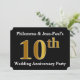 Este design de convite apresenta o número ordinal "10º" com uma aparência semelhante ao ouro falso. Também apresenta nomes personalizados. Poderia ser usado para a festa de aniversário de dez anos de casamento de um casal.