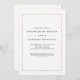 Estes convites modernos e elegantes para brunch de posto apresentam texto preto sobre fundo branco, com uma falsa borda de ouro rosa.