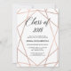 Este convite para festas de formatura da Classe na moda de 2018 apresenta um design geométrico rosa de ouro moderno e falso em fundo branco.