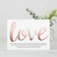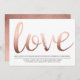 Este convite de casamento apresenta um tipo de script de aparência com uma textura de folha de ouro rosa.