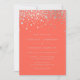Um convite de casamento moderno e elegante, com falso confete de folha prateada num fundo de coral. Este convite faz parte de uma suíte de casamento. Outras cores e itens correspondentes estão disponíveis. Por favor, note-se que não haverá folha de prata real - folha de prata falsa no produto final.