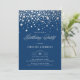 Convide convidados para o seu evento com este convite de aniversário personalizável. Ele apresenta pontos falsos de configuração de folha prateada num fundo azul. Personalize adicionando seus detalhes. Este convite de aniversário azul é perfeito para qualquer tema de aniversário ou estação.