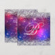 Um elegante monograma de 60 anos para ela. Brilhante prateado com faíscas contra uma foto do espaço celestial preto, roxo e azul. O monograma de caligrafia em preto-e-branco rico e todo o texto de evento especial podem ser personalizados. Todos os elementos brilhantes desta design de menina moderna são gráficos digitais. Você pode transferir o design monograma na frente para um presente pequeno ou médio correspondente.