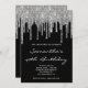 Convites Faux Sparkly Silver Glitter Drives Black Birthday