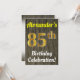 Este design convite de aniversário apresenta uma mensagem como "A 85ª Celebração de Aniversário de Alexandre!", onde o nome pode ser personalizado, e onde o número "85º" tem uma aparência falsa de ouro. Ele também apresenta um fundo de aparência rústica de madeira falsa. Os detalhes do evento no verso podem ser personalizados. Poderia ser usado para convidar pessoas para a oitenta festa ou festa de aniversário de alguém do quinto aniversário. [~Z0000119]