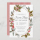 Set in a festive, candlelit atmosphere with sparkling cocktails, holiday hors d’oeuvres, and the warmth of good company, this soirée is all about celebrating the joy of giving — and discovering delightful new favorites to love. This elegant invitation has an oval frame trimmed in gold with winter botanicals of holly and red berries with other leafy stems framing your text beautifully. A red thin striped pattern on the back of the invitation add to the holiday theme.