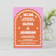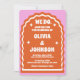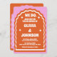 O nosso convite para o casamento, ao estilo retrógrado, é perfeito para o casal da moda, que ama se destacar e fazer uma declaração ousada. Nosso design apresenta uma combinação de cores rosa-laranja-forte e brilhante. Formas simples de arco ondulado de abstrato criam uma aparência ousada com "Fazemos". Mostradas ousadamente em letras grandes brancas. O verso apresenta um simples design moderno, com um monograma ousado e um endereço opcional do site de casamento do casal.