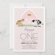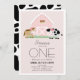 As 1ruas/primeira convite de aniversário desta menina fofa e moderna apresentam um cavalo e uma vaca com um celeiro cor-de-rosa sobre um fundo cor-de-rosa escamoteado por uma fronteira branca. O verso apresenta um fundo branco com padrões de vacas negras. Personalize para suas necessidades. Você pode encontrar produtos correspondentes na minha loja.