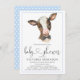 O bebê de vaca faz convites com um bezerro de vaca de cor aquosa vestindo uma gravata arco num fundo de bolinhas azul. Estes convites para bebês de vaca são facilmente personalizados para o seu evento simplesmente adicionando os seus detalhes. Você também pode adicionar uma cor de fundo.