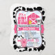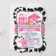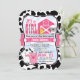 É uma garota! Bela fazenda de celeiro, colorida, convite para chá de fraldas sobre o tema fazenda no padrão preto e branco do país. Possui vaca branca e negra, porco rosa-porquinho, cordeiro branco, ovelha e pintinho amarelo, galinha, com celeiro rosa quente e céu azul. Excelente para fazenda e rancho giros, fazendeiro, chás de fraldas temáticos de vaquinha! Vintage, convite em forma de colchete elegante.