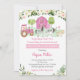 Este convite apresenta animais de criação bonitos com sotaques florais cor-de-rosa.
