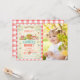 Europeia: Um belo convite de aniversário para agricultores nostálgicos e eternos com gingham vermelho. As lindas cores rústicas do pastel ajustado qualquer estilo de festa como Mercado de Frutas e Veggies, Mercado de Frutas e Partidas de Fazendas. Projetado para corresponder à nossa coleção de temas do Mercado de Agricultores.
