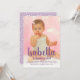 Ela está fazendo um ano! Este convite de aniversário de um ano roxo elegante apresenta a foto da sua filha com um nome em letra manuscrita ousada e "Está Fazendo Um Ano!" sobreposto em roxo rico. Os detalhes da festa ficam abaixo em tipografia moderna para um visual sofisticado e feminino. A parte de trás exibe um padrão de confetes roxos e brancos divertido. Todo o texto é totalmente personalizável para a celebração da sua pequena.