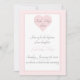 Convide a família e os amigos para o batismo da sua filha com este belo convite. A frente tem uma rosa claro de fundo com coração com o texto Fé, Esperança, Amor. Uma área de intervalo tem espaço para anunciar a data do batismo do seu filho. As costas têm espaço para a igreja, recepção e detalhes de RSVP.