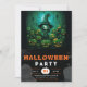 Prepare-se para convocar uma diversão de Halloween com este convite de festas. A metade superior apresenta uma cena arrepiante com uma misteriosa bruxa fazendo um chapéu preto, seus olhos vermelhos brilhando ameaçadoramente enquanto ela se coloca em meio a uma floresta sombria. Jack-o-lanternas arrepiantes adicionam um toque de susto festivo, enquanto a lua de cheio lança uma luz estranha, melhorando o ambiente de Halloween. Fazendo a transição para a metade inferior, o design toma uma vibração clássica assustadora com um fundo negro e ousado. Aqui, morcegos de cinza, teias intricadas espalham seus cordões delicados, e marcadores de túmulos intactos ancoram a cena. Os detalhes da festa são exibidos de forma destacada em cor laranja e branca, com uma charmosa abóbora branca destacando a data do evento em algarismos laranja. Ao virar o convite, as costas continuam o tema do Halloween com um fundo negro profundo cheio de morcegos de cinzas, fantasmas brincalhões, valas sombrias brilhantes, jack-o-lanternas, teias de aranha, árvores tortuosas e crânios de areia. Esta design consistente garante que a aguardente de Halloween brilha em todos os lados. Com sua combinação de imagens assustadoras e cores vibrantes, esse convite moderno captura perfeitamente a essência do Halloween. É uma escolha ideal para se estabelecer o clima e convidar convidados para uma festa de entusiasmo estranho e diversão festiva.