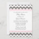 Convites personalizados do chá de fraldas no rosa de bebê claro elegante e moderno, em cinzas de carvão vegetal escuras e em teste padrão de ziguezagues da viga do divertimento do branco. Customizável com seu texto, contacte-nos para pedir uma mudança da cor.