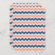 Convites náuticos personalizados do batismo do tema em azuis marinhos escuros elegantes e modernos, teste padrão de ziguezagues em cor-de-rosa do pêssego e em branco alaranjado da viga do divertimento com roda e bandeira do navio. Customizável com seu texto, contacte-nos para pedir uma mudança da cor.
