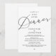 Anuncie e compartilhe seu final feliz com estilo com nosso design de tema preto e branco romântico moderno (Jantar de final feliz) para convite de celebração de casamento íntimo. É ideal para casais que decidiram celebrar seu melhor dia. Com um design sofisticado e divertido, este convite certamente estabelecerá o tom para um evento inesquecível. O cartão de convite apresenta um tema de design de letra moderno e minimalista, adicionando um toque de elegância atemporal à sua celebração. Criado por TeeshaDerrick