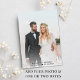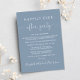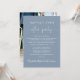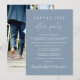 Convite elegante e sofisticado para casamento íntimo ou anúncio de casamento, recepção ou festa de celebração, na cor azul poeirado. Na frente, "Festa Felizes para Sempre" é escrito com uma mistura de tipografia branca simples e uma caligrafia branca elegante com floreios, e você pode personalizar sua mensagem e convite com mais detalhes e seus nomes em uma caligrafia semelhante a uma assinatura. O verso apresenta sua foto de casamento favorita, seus primeiros nomes e data do casamento.
