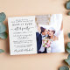 Convite moderno de fuga ou anúncio de casamento privado e recepção com sua foto e "Festa Feliz para Sempre" em uma mistura de tipografia simples e um script elegante com floreios. Adicione os detalhes da sua festa ou recepção e seus nomes em um script semelhante a uma assinatura.