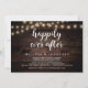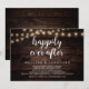 Linda celebração de Felicidade Para Sempre, cartão de anúncio / convite de casamento íntimo, em madeira rústica de fazenda, design de luzes de corda. Isto é perfeito para o seu casamento e festa de celebração pós-casamento. Adicione seus detalhes em fonte / letra correspondente.