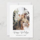 Este belo cartão de Felicidades de Férias com uma moldura de foto arqueada apresenta caligrafia moderna e um design minimalista. Edite facilmente a maioria das palavras para combinar com a mensagem de férias desejada! Fácil de personalizar em cor, texto e fotos!
