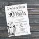 Animações informais e engraçadas e cervejas, homens com trinta cartas de convite de aniversário com um roteiro de tipografia de rico, uma caneca de cerveja de rabisco e espirais de estilo vintage. ++++++++++++++ Adequado para qualquer festa de aniversário etária ou marco. Fácil de personalizar alterando a idade, o nome e os detalhes da festa!
