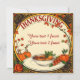 Um convite de Ação de Graças e ou saudação..Texto escrito em um círculo amarelo com frutas e legumes de Ação de Graças e quadro de outono, Personalizável e personalizado.. A parte de trás é uma imagem básica de opacidade inferior da frente... que pode ser gravada ou alterada conforme desejar