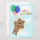 Feliz aniversário, parabéns, tipografia, urso, balões, céu, crianças, engraçado, desenho animado para crianças