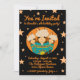 Convide convidados para seus primeiros aniversários com este convite exótico e caprichoso, que apresenta alpacas bonitinhos / lhamas / guanacos / vicunas cavalgando caveiras e serapes coloridas ao estilo sul-americano em fundos laranja estrelados, pretos e queimados! Design © W.H. Sim. Mais informações em zazzle.com/expressionsoccasions