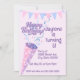 Convite de aniversário roxo e rosa para meninas. Personalizar: informações de nome, idade, data/hora, local e RSVP. Olhe para a garota. Cores bonitas. Perfeito para qualquer tema feminino.
