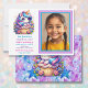 Adicione a foto da sua filha a este unicórnio fofo e ao convite de aniversário da menina azul, roxa, rosa e roxa.
