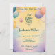 Comemore o aniversário do seu filho com este convite colorido para o tema do balão com um adorável tigre segurando um balão. Personalize o convite com o nome do seu filho, os detalhes do evento e uma mensagem especial para uma comemoração divertida e alegre. O design de capricho acrescenta um toque divertido e único, fazer-o perfeito para uma festa de aniversário memorável.