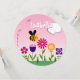 design digital bonito com um abelhão, flores, grama e uma nuvem. Personalize o texto com os detalhes da sua parte. As cores incluem amarelo, verde, rosa, roxo, azul, preto e branco.