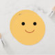 Convidado para o aniversário de um rosto feliz amarelo bonito