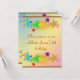 Esta placa ou faixa de aniversário é desenhada com "Parabéns" em diferentes cores. Estrelas em roxo, vermelho, ouro e multicores, e um sol amarelo brilhante com raios são usados como pano de fundo. Este é um convite que corresponde ao convite da RSVP Card Happy Birthday e Stars. Um arco-íris de fundo colorido também foi adicionado juntamente com uma borda marrom. Pode ser personalizado com todas as suas próprias informações.