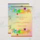 Esta placa ou faixa de aniversário é desenhada com "Parabéns" em diferentes cores. Estrelas em roxo, vermelho, ouro e multicores, e um sol amarelo brilhante com raios são usados como pano de fundo. Este é um cartão RSVP que corresponde ao convite Feliz Aniversário e Estrelas. Um arco-íris de fundo colorido também foi adicionado juntamente com uma borda marrom. Pode ser personalizado com todas as suas próprias informações.